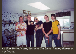 All Star United was the star performer for Air Raid 10, held at Barrie Vineyard on Patterson Road. Only 250 people showed up. We took a financial bath, but gosh was it good! It seemed that many people did not associate radio songs with the artists who perform them. A problem that exists still. So those great songs, and I do mean "great" (!), were wasted on a small crowd. Still, having a bit of pull as the Station Manager, I brought ASU to my house for a yummy lasagna dinner and got to know the singer and songwriter Ian Eskelin. (Later that night, I somehow ended up on stage singing "Smash Hit". But that's another story for another journal.) I still maintain that Ian Eskelin is one of Christian music's best lyricists. Hmmmm....maybe Air Raid 20? Hello...Ian?